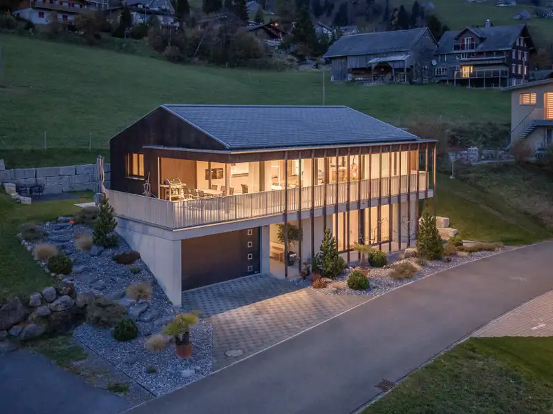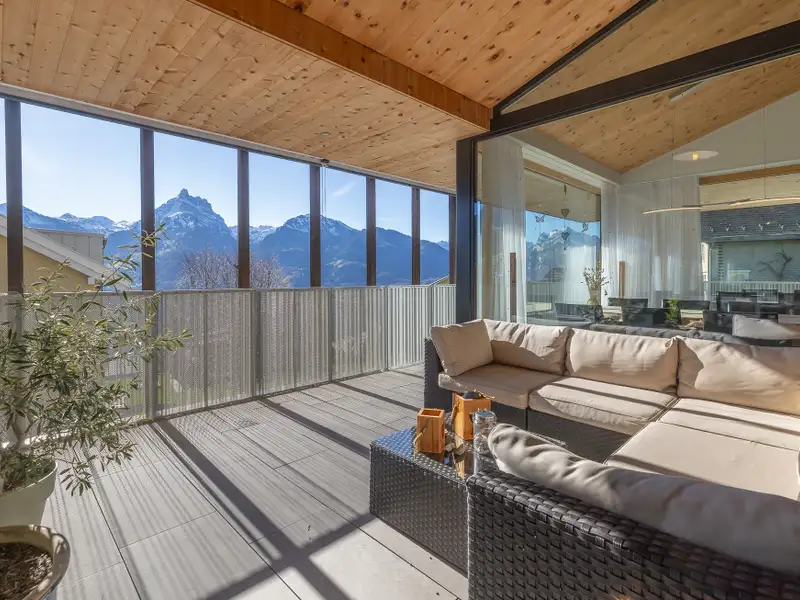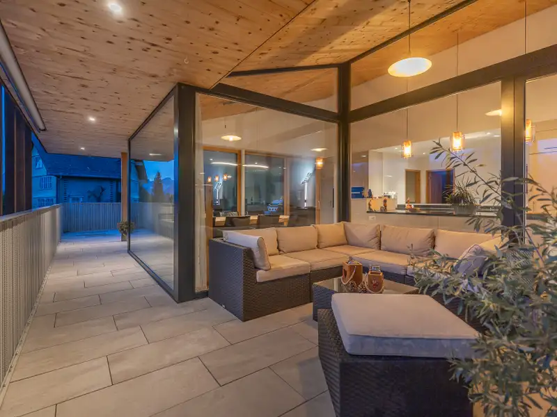 - Offener Wohnbereich mit bodentiefen Fenstern