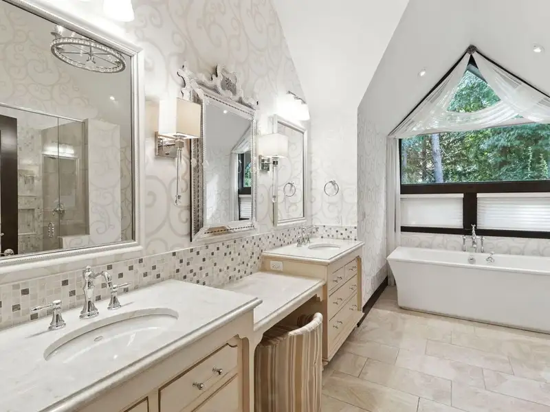 This ch�teau-style luxury residence combines timeless design with modern comfort. Set on a private hillside with nearly an acre of established landscaping, the home offers 4 bedrooms, 3 full baths, a half bath, and more than 5,000 sq ft of custom finishes.From the circular drive and stone exterior to the grand marble foyer, every detail speaks of elegance. The remodeled chef's kitchen opens to a family room with three walls of windows, while formal living and dining spaces showcase cherry paneling and a granite-surround fireplace.The primary suite is a true retreat with vaulted ceilings, a fireplace, a walk-in closet, a private deck, and a spa-inspired bath. Additional bedrooms include walk-in closets and built-in seating. The upper-level catwalk leads to a wood-paneled study/gaming room.The walkout lower level is designed for entertaining with a granite-floored recreation area, full wet bar, flexible rooms for hobbies or a guest suite, and patio/hot tub access.An oversized heated/cooled 3-car garage, advanced home systems (including security, sound, radon, central vacuum, and zoned HVAC), and extensive outdoor lighting complete this one-of-a-kind property.