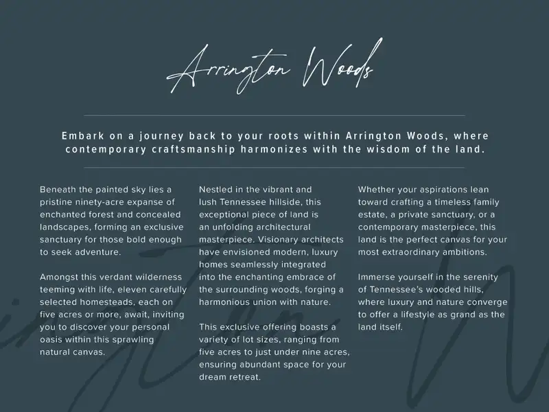 Poised on 8.62 acres of rolling Tennessee countryside, this design-to-be-built estate offers over 8,300 square feet of uncompromising luxury. Crafted by renowned builder Stone Ridge Custom Homes, this five-bedroom, five full and two powder baths residence promises an extraordinary living experience defined by architectural elegance, refined finishes, and seamless indoor-outdoor flow.