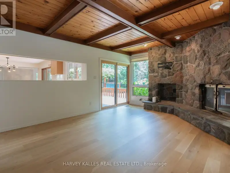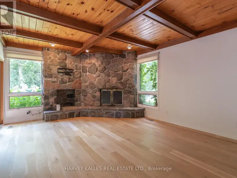 - Wood-burning fireplace with flagstone detail