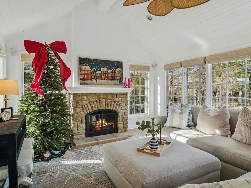 • Cozy family room with vaulted ceiling and fireplace