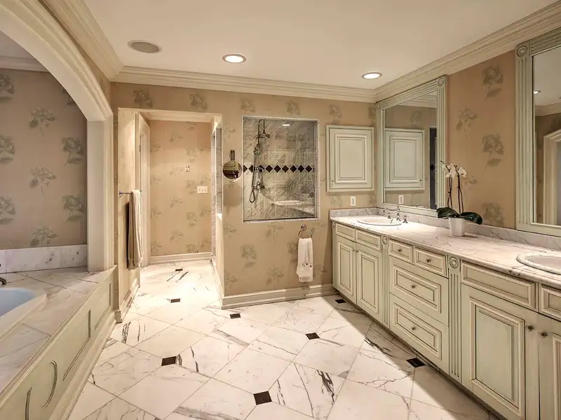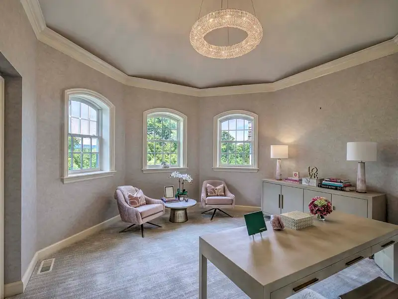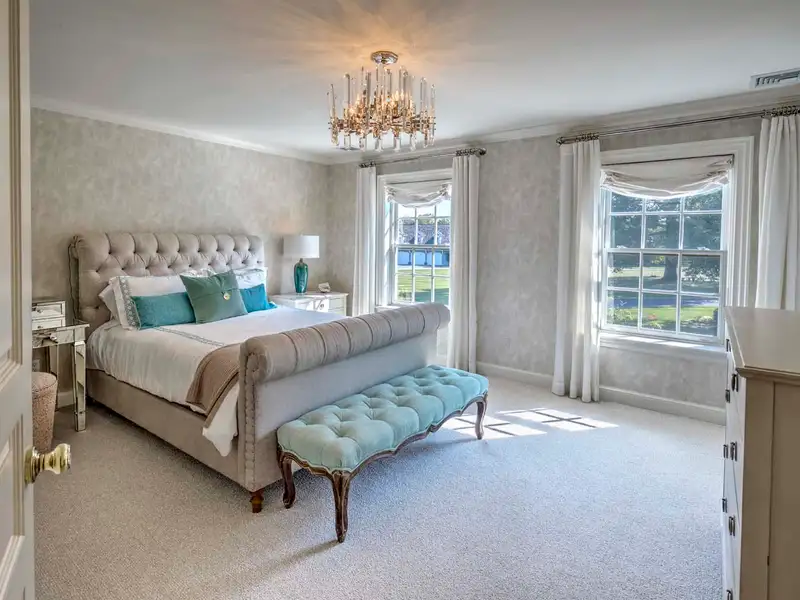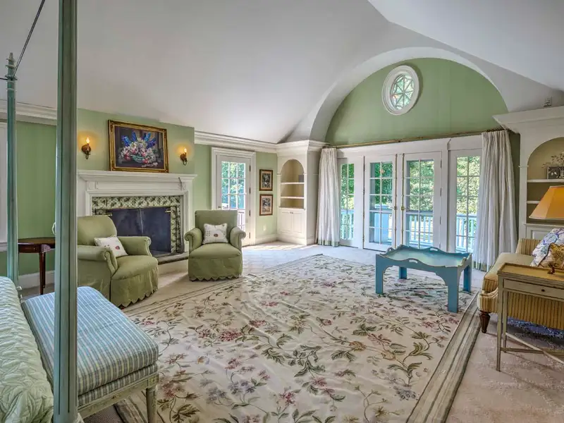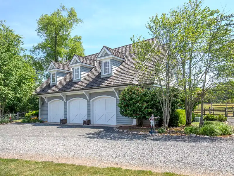 A detached three-car garage is designed with an adjacent horse barn offering three beautifully finished stalls, a kitchen, bath, storage room and access to a turn-out field. The barn's second level has a two-bedroom apartment and a separate bonus room, ideal for guests or staff. Originally built in 2000 and thoughtfully updated through the years, this architecturally-nuanced residence is finished in whitewashed brick, gray clapboard and a cedar shake roof. Its Bedminster location in Somerset County is celebrated for open green spaces, winding country roads and legendary estates, yet is only about an hour from Manhattan and approximately 45 minutes from Newark Liberty International Airport.