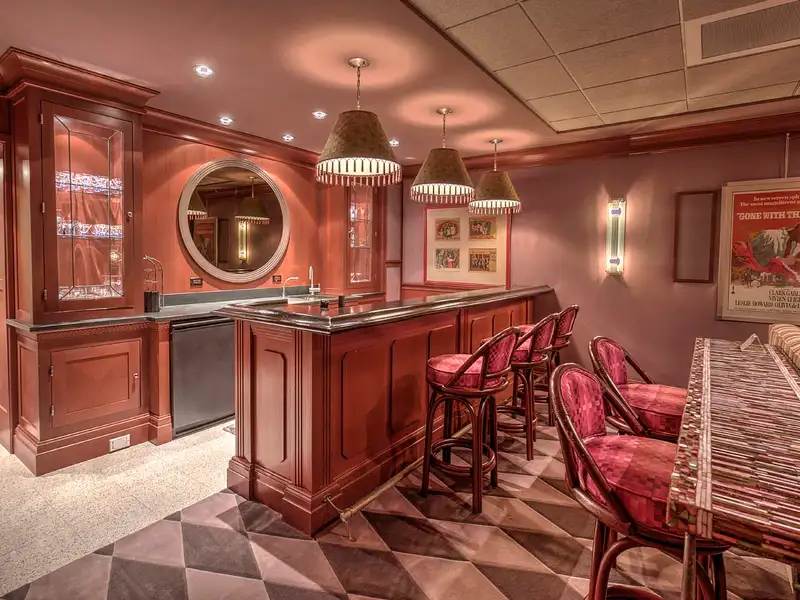 The third level was renovated in 2020 and offers a bedroom, full bath, sitting area and roomy cedar closet. The walkout lower level is accessible by stairs in both the entrance foyer and mud room area. Of special note is the Tuscany-inspired wine cellar which is temperature-controlled and provides storage for over 1,500 bottles. The beamed ceiling tasting room has a gas fireplace, terra cotta floors and a wrought iron chandelier. This level also has a home theater/media room with a wet bar, refrigerator and popcorn machine; a huge playroom; a home gym with glass doors to the yard; a full bath; infrared sauna and mechanical systems including a whole-house generator.