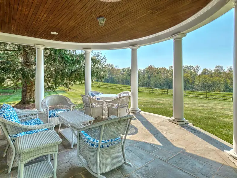 Set on 44± open, rolling acres in Bedminster Hunt Country, an exceptional gated Colonial Revival estate with equestrian facilities is set along one of the township's most desirable lanes. Featured in NJ Design magazine, the sophisticated interiors create a relaxed ambiance characterized by rich colors and remarkable millwork. The expansive seven-bedroom, eight full bath and two half-bath main residence is enriched by a three-stall horse barn featuring an attached three-car garage with a two-bedroom apartment above and an adjacent bonus room with kitchenette and full bath. Outside the main house, a generous patio and dual-covered side porches overlook sublime views of the acreage, while a pool tucked beyond a charming arbor and white picket fencing is lushly landscaped. Set far back from the road at the end of the long drive, this gracious property provides absolute privacy.
