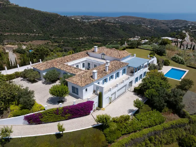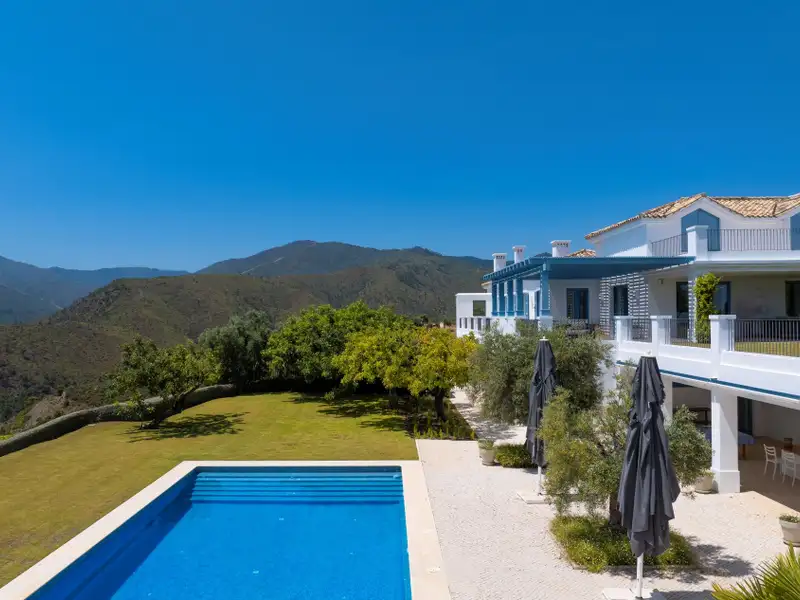 Perched on a rare flat double plot spanning 6.950m2 within the exclusive and secure enclave of Monte Mayor, this cortijo, style villa is a true andalucian sanctuary. Accessed via a 150meter private driveway, the property immediately impresses with its authentic charm, sense of privacy, and sweeping views of the sea and surrounding mountains. Framed by mature pine and olive trees, the estate blends effortlessly into its natural surroundings. Each room and terrace offers a unique and elevated view, wether it´s the glistening Mediterranean, the rugged contours of the mountain foothills, or the beautifully landscaped andalusian gardens. With nearly 700m2 of south-facing interior space, the home is thoughtfully designed for relaxed living and entertaining. Five en-suite bedrooms, expandable to six, are complemented by bright open-plan living areas, a home cinema, and a games room. Outdoor spaces feature a poolside bar, barbecue area, and expansive terraces for year-round enjoyment. The architecture reflects classic andalusian style, with a romantic central patio, whitewashed walls, blue shutters, and a layout that balances family comfort with refined hosting areas. From breakfast in sunlit spaces to shaded afternoon retreats, sunset drinks on the terrace, and dinners under the stars, every part of the home is designed to be enjoyed. Elevated above the bustle of the coast, it offers a peaceful sanctuary close to all the amenities of the Costa del Sol. This is more than a home, it´s an immersion in the natural beauty and traditional elegance of the tranquil andalusian lifestyle. Welcome to your private hideaway above Marbella. Contact us today for your exclusive viewing.