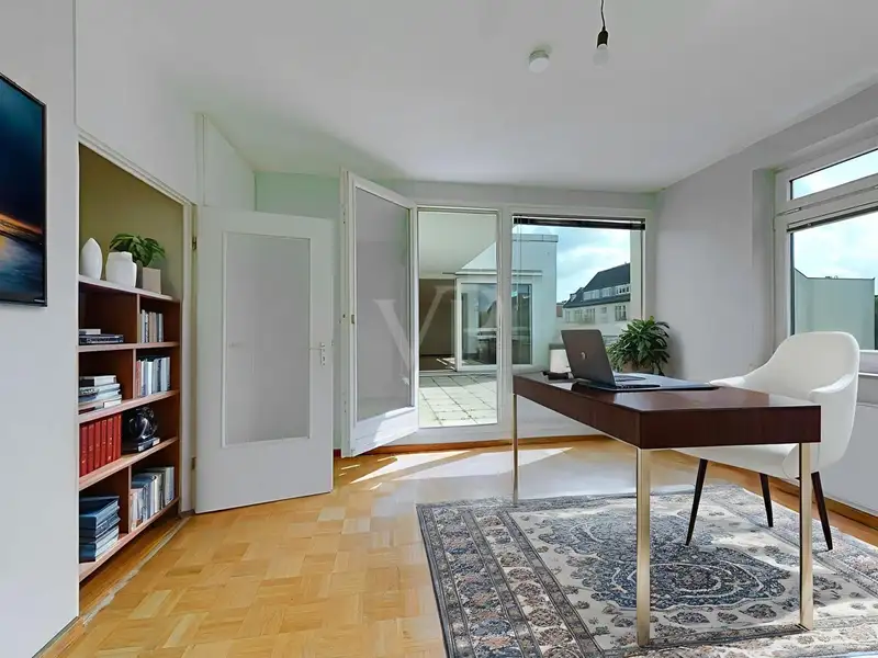 The quiet bedroom, facing north, offers pleasant coolness on warm days and serves as a perfect retreat. A separate, walk-in closet is directly adjacent. Another room can be used flexibly as a children's room, guest room or study - according to your needs.