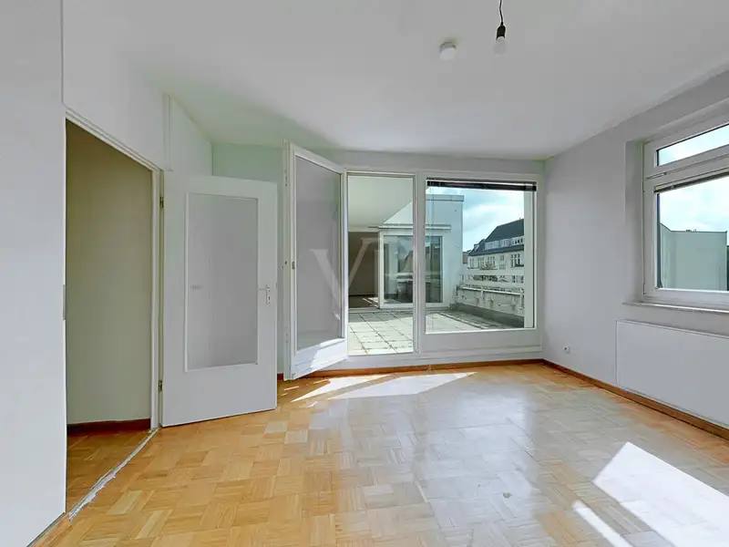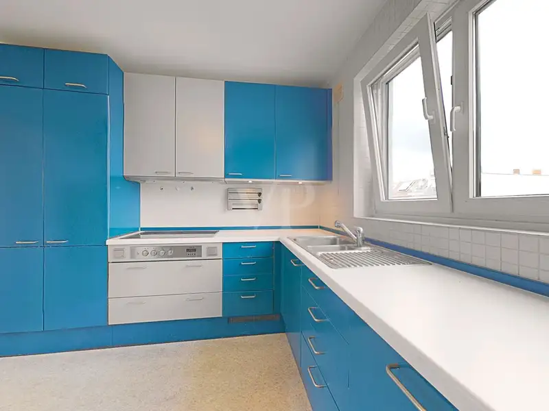 It has three rooms and impresses with its well thought-out room layout. The centerpiece is the open-plan living and dining area with access to the south-facing sun terrace - ideal for relaxing hours outdoors or social gatherings. Particularly noteworthy is the approx. 40 m² living room, which impresses with its brightness and far-reaching views.