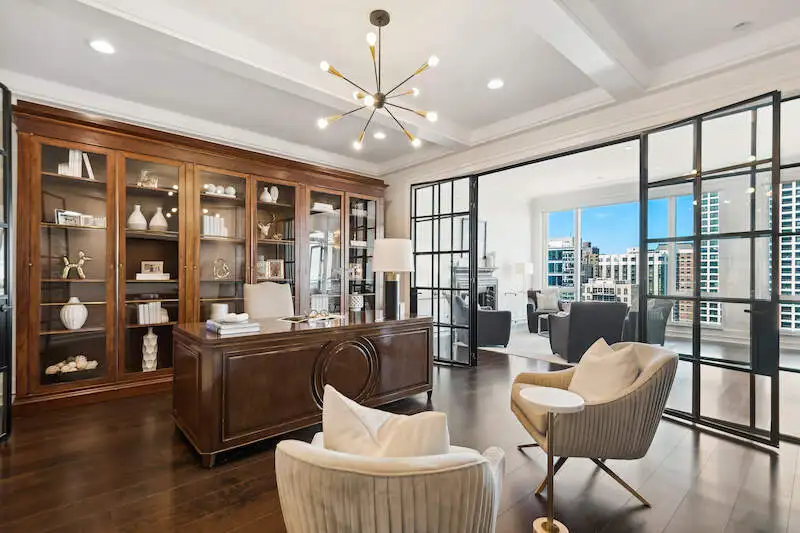 - Floor-to-ceiling windows with skyline views
