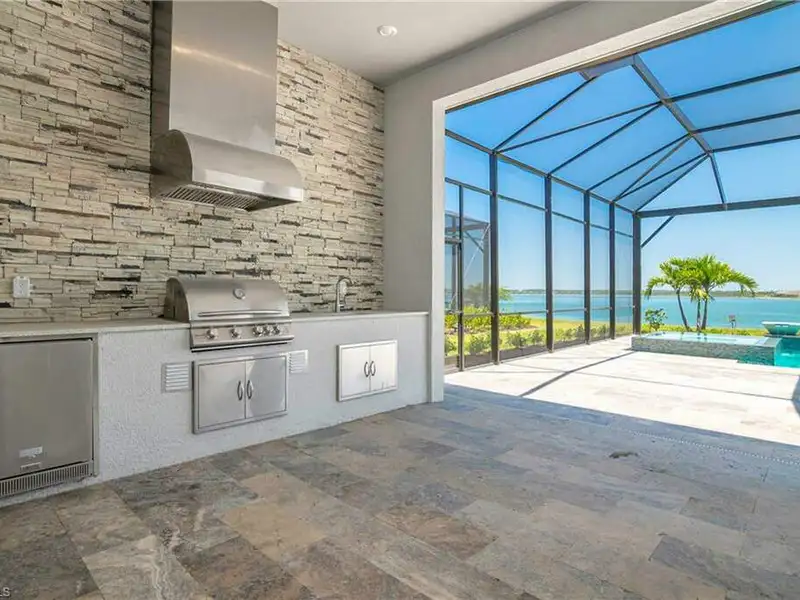 - Infinity pool, spa, and outdoor kitchen