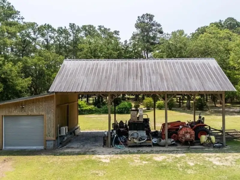 - Barn and sheds on cleared field