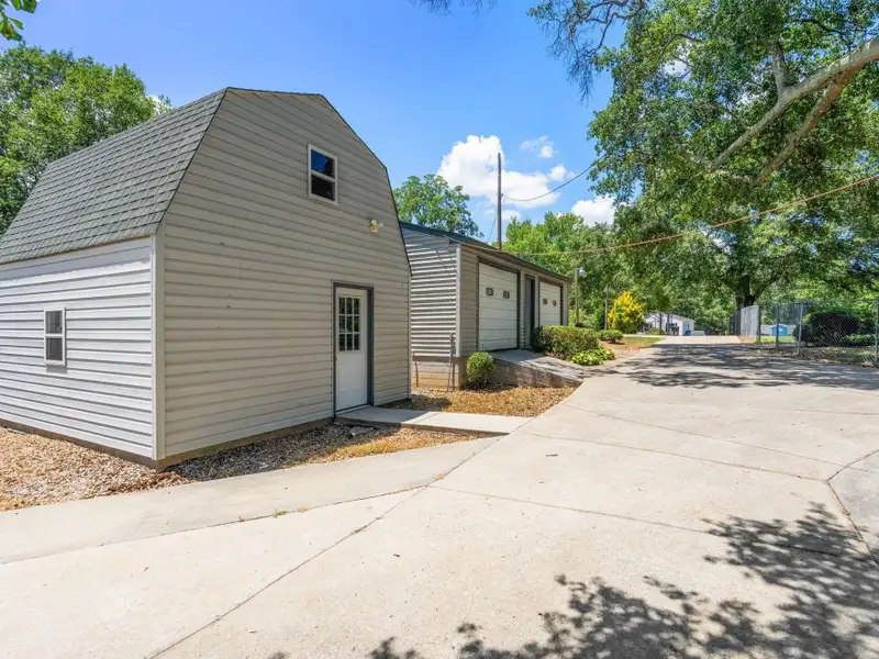 - Two garages plus two-story storage shed
