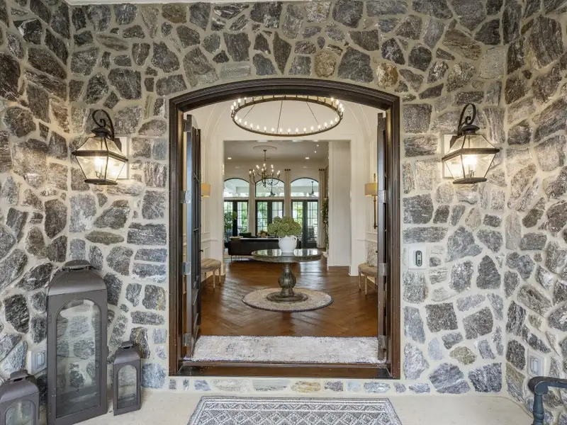 - European-inspired stone façade
