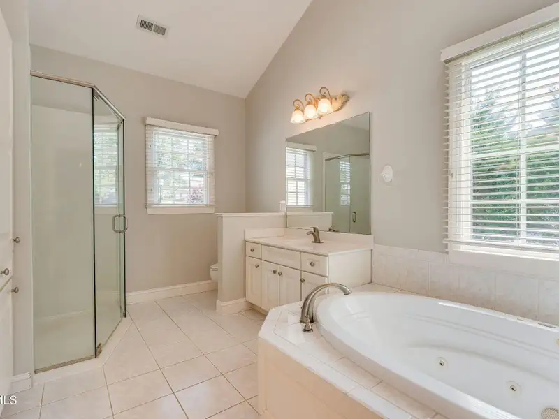 - Main-level primary suite with jetted tub