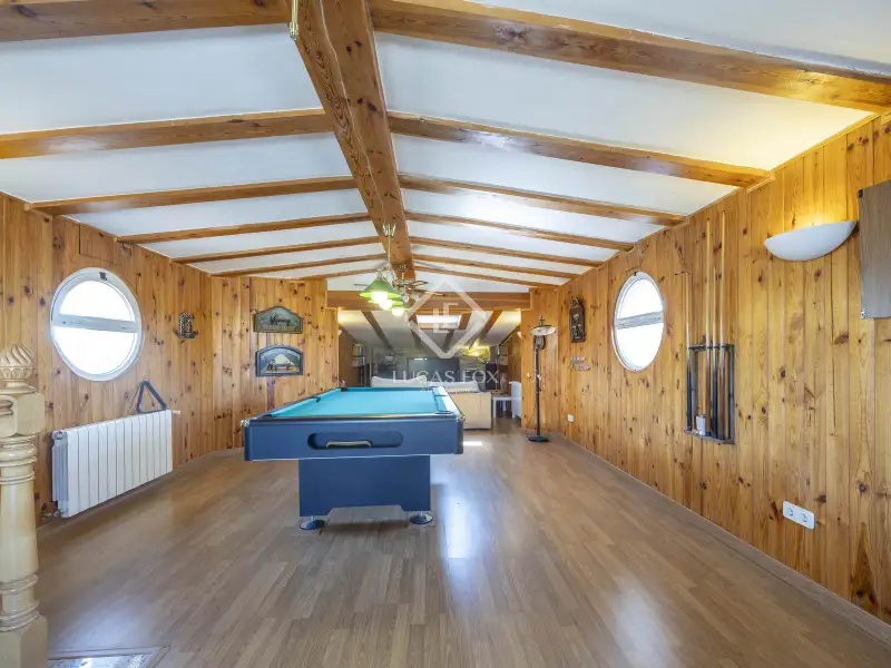 - Attic boasting wooden walls and play area