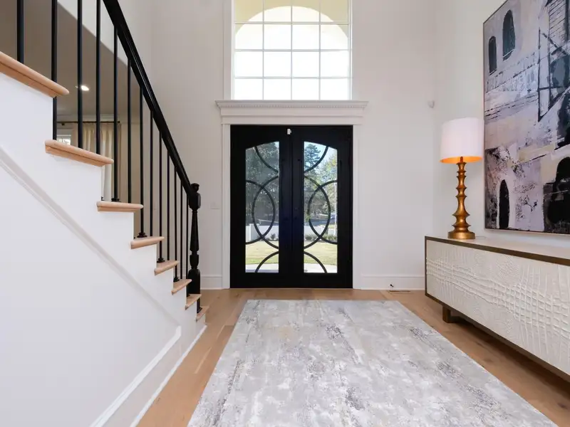 - Three-car side-load garage