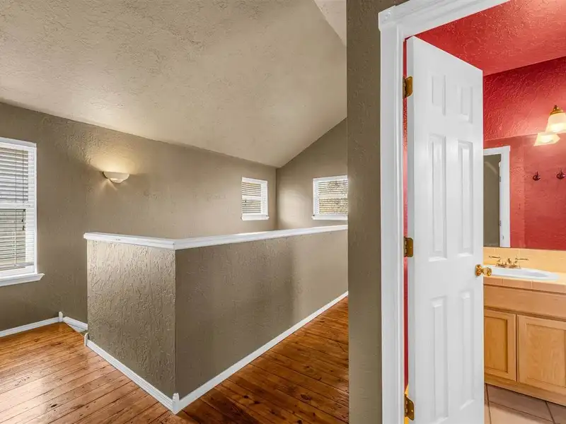 - Upstairs loft with repurposed hardwood floors