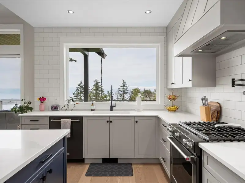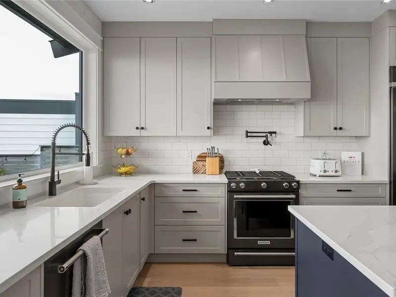 - Large quartz island kitchen