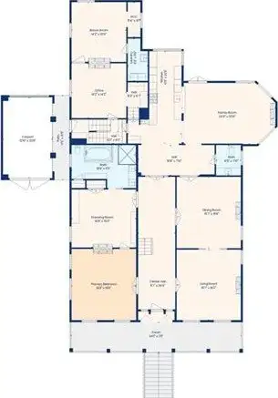 - First-floor primary suite with luxurious bath