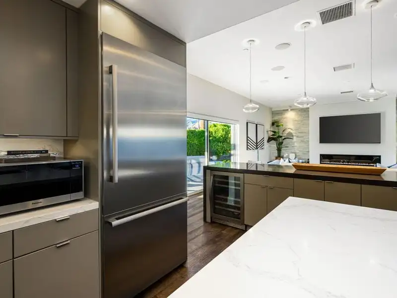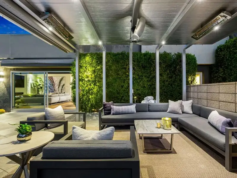 - Outdoor kitchen with built-in BBQ and refrigerator