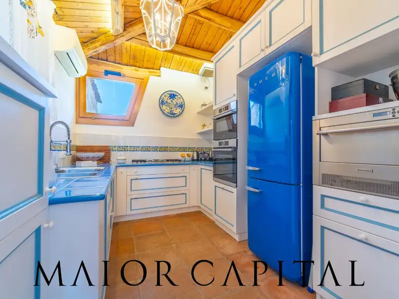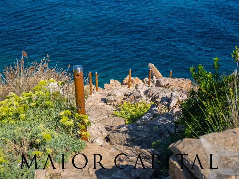 The villa is surrounded by a private park of approximately 4,000 sqm, enriched by lush Mediterranean maquis and a well-tended garden that guarantees total privacy. Access to the property, which opens onto a green lawn, is made even more spectacular by a driveway leading to the entrance patio, embellished with vibrant bougainvillea in bloom. From every corner of the house, you can admire the magnificence of the sea, the view that changes every hour of the day, and the feeling of peace that only such an exclusive location can offer.
