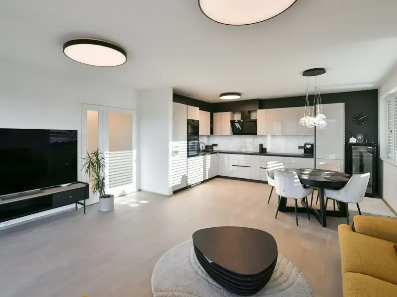 We are offering for sale a unique apartment with a 4+kk layout, with a floor area of 119 sq.m., augmented by 2 balconies (totaling 17 sq.m.), a cellar, and 3 spacious garage parking spaces included in the price - this pleasant benefit significantly increases the property's value and facilitates everyday life. The bright and spacious apartment is located in a modern residential building with an elevator in the "Bydleni Branik" project by Trigema developer.