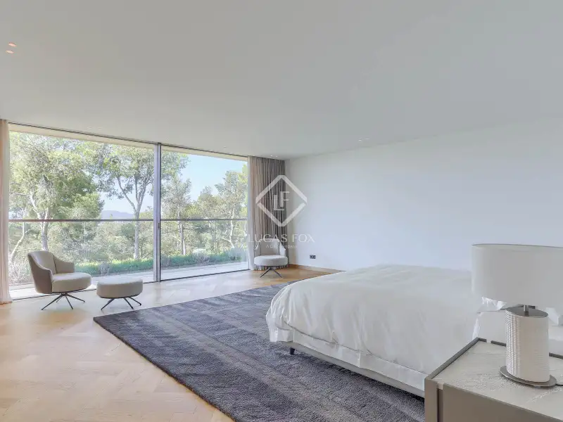 This newly built modern villa is unlike any other in Portals Nous, one of the most prestigious locations in the southwest of Mallorca. Set on a generous landscaped plot, the property offers a rare combination of privacy, architectural elegance, and contemporary Mediterranean style, creating a residence of true distinction. From the outset, this home sets itself apart. Designed by a prestigious architectural team, it embodies modern sophistication with open-plan interiors, floor-to-ceiling windows, and seamless transitions between the living spaces and the outdoors. The villa’s unique double-access design underscores its exclusivity: a discreet rear entrance leads directly to the bedroom level, while the impressive lower-level entrance reveals a standout feature – an expansive garage with exceptional capacity, complemented by a fully equipped gym, private spa, and wine cellar. Across its three levels, the villa offers seven bedrooms and eight bathrooms, each designed for comfort and independence. The primary suite crowns the upper floor with panoramic sea and mountain views, walk-in wardrobes, and a spa-style bathroom with freestanding bathtub. Additional suites on each floor ensure maximum privacy for family and guests, with one opening onto its own terrace and two located on the lower level – ideal for extended stays or visitors. The outdoor areas have been designed as extensions of the living space, centred around a striking saltwater infinity pool surrounded by landscaped gardens, sunbathing terraces, and dining areas. A covered terrace with a fully equipped summer kitchen provides the perfect setting for entertaining year-round in complete seclusion. Every detail has been carefully considered, from the lift connecting all floors to the underfloor heating, air conditioning, and premium finishes. The result is a unique property that combines scale, elegance, and privacy, offering not just a home but an unparalleled lifestyle in one of Mallorca’s most coveted addresses.
