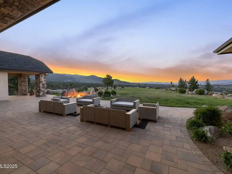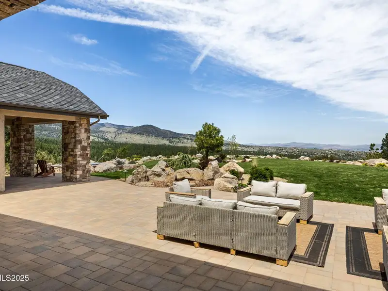 This is what it looks like at the top. Own the CROWN of Reno at 29 Bennington Court—a powerful property, built for bold living on one of the region's largest mountain top lots featuring 360-degree views of Mt. Rose, the city, and the forest. This custom, 4,831 sq ft single-level estate combines privacy, exclusivity, and luxury with three spacious suites, heated quartzite counters on the Kitchen Island, High end Thermador appliances, and Waterstone fixtures. Outside, the terrace features a massive yard, spa, gas firepit, and wood-burning hearth. Rising from St. James's Village, 29 Bennington Court commands the most powerful vantage in Reno. Spanning 6.33 acres across two contiguous parcels, this estate offers uninterrupted 360-degree views of Mt. Rose, downtown Reno, and the Sierra forest canopy. This single-level estate defines the top, geographically, architecturally, and experientially. This is not simply a home with views. It is the highest-positioned property in one of the region's most exclusive gated community—a singular alignment of land, layout, and presence. No other estate combines this scale, privacy, and presence. It does not compete. It leads. The structure is grounded in proportion and permanence. Wide hallways, soaring soffit ceilings, and generous transitions create a deliberate rhythm throughout the home. Material selections emphasize integrity over ornamentation: hardwood in primary living areas, plush carpet in private quarters, and marble thresholds where spaces shift. Skylights are positioned to trace the sun's arc, filling the interiors with natural light throughout the day. Each of the three en-suite bedrooms serves as a fully self-contained retreat—private, quiet, and complete. The primary suite features a steam shower, a deep soaking tub, radiant in-floor heating, and a meticulously outfitted dressing room with mirrored cabinetry, tailored lighting, and integrated storage. A discreet pass-through leads to the oversized laundry room, outfitted with dual washers and dryers, concealed hampers, and extensive cabinetry—designed for lasting function. Designed to balance performance and intention, the kitchen centers the home as a working space and a gathering area. A complete Thermador suite includes a six-burner range with griddle, dual convection ovens, commercial-grade ventilation, and integrated refrigeration. Heated quartzite countertops provide tactile comfort and thermal consistency. Cabinetry is full-depth and soft-close, with Waterstone fixtures chosen for their weight, reliability, and enduring finish. The walk-in pantry includes open shelving, a pebble ice maker, and grocery access to a three-car garage. Exterior living areas are designed for use and longevity. The terrace unfolds to a large patio with outdoor electric heating and a wood burning hearth, a recessed Bullfrog spa, a gas fire pit, and a massive yard. Hardscaping materials, including poured concrete and boulders sourced directly from the site, frame the home within its landscape rather than separate it. The office is not a token room; it is a space for strategy, output, and reflection. Equipped with built-in storage, a seamless flow into the great room, and forest-facing windows, it is designed to support sustained thought and forward movement. Whether the work is creative, operational, or directive, this is a room that holds its purpose. 33 Bennington Court, an adjacent undeveloped parcel, is included in the sale. Build a second structure, hold the land in reserve, or preserve the buffer indefinitely. This second lot represents opportunity and leverage in a gated setting where acquiring additional acreage is nearly impossible. Opportunities like this are never replicated. They're seized. No other property in Reno offers this elevation, this acreage, or this architectural clarity. 29 Bennington Court holds its position without effort—dominant in placement, precise in design, and unmatched in scope. It does not compete. It stands alone.