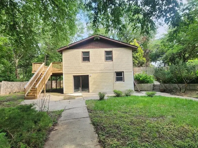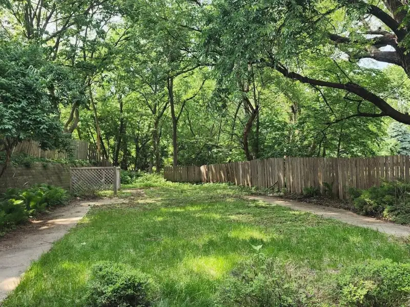 - Spacious backyard with mature trees