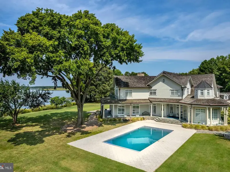 NEW PRICE! Located minutes from downtown St. Michaels, Aqua Vitae the waters of life, sits on 8.6 private acres on Harris Creek, a Chesapeake Bay tributary. This custom-built offering w/ over 400 of direct water frontage is comprised of 3 magnificent structures: a grand main residence, guest cottage, & party barn all highlighted by a waterside pool, pier w/ 4 MLW, pine grove, putting green, extensive landscaping & incomparable craftmanship. The 12,000 SF main residence, positioned to prioritize water views, welcomes you via prominent double lead-glass doors & a grand 3-story foyer w/ dual-staircase. The river room w/ 2-story octagon copula offers 270 views of the property & creek. The TV room w/ 3 exposures & gas-burning fireplace offers double French doors on two sides leading to the wrap-around flagstone patio. The stunning gourmet kitchen is a true chefs dream. Offering oversized island, built-in media/storage cabinet, coffered ceiling, fireplace, 3 sinks, double Subzero fridges w/ freezer drawers, 2 beverage drawers, 3 dishwashers, Wolf microwave & a stainless-steel Lacanche range with 6-burners, pot warmer, warming oven, & 2 ovens. Complimenting the kitchen is a large walk-in pantry w/ dishwasher, sink & extra freezer in hall. Off the kitchen is a covered porch w/ gas fireplace & ghost screens, a perfect spot to enjoy evenings. A large open dining room has 2 custom built-in display cases. The grand salon w/ bay window, gas-fireplace & intricate mantel is reminiscent of Paris. Adjoining the salon is the handsome 2-story curly cherrywood library w/ custom display cases & leaded-glass pocket doors. The adjoining climate-controlled wine room has a wet bar & storage for 750+ bottles. Wood floors flow throughout the entire main level. The main level is completed by an office, powder room & laundry to service the pool, 2 additional powder rooms, elevator to all 4 levels, mud/dog room, rear spiral staircase, guest suite w/ ensuite bathroom, & 2-car attached garage. The 2nd level offers a generous primary suite w/ fireplace & full length terrace overlooking the water. Her wing features dressing room w/ custom built-ins, separate sitting room, & a luxurious bathroom w/ marble tile, separate shower, jetted tub, & vanity. His wing offers an office w/ fireplace, paneled closet leading to separate bathroom w/ shower, travertine stone, & vanity. From his office access the 2nd level of library, open to below. Just off of the primary suite is a bar area/kitchen. 3 additional bedrooms, each w/ ensuite bathroom, and a laundry room complete the 2nd level. The 3rd level offers theater/rec room, play area, bedroom w/ ensuite bathroom, powder room, & ample storage. The lower-level houses utilities, storage, & enough room for an exercise area. The charming guest cottage sits amongst extensive landscaping. The main level offers a full kitchen, dining area, living room, sunroom, large family room, 2 bedrooms w/ shared bathroom, additional guest bathroom, & large entertaining room. Upstairs is a full bedroom w/ ensuite bathroom. The unfinished lower level offers storage. The party barn originally built for boat storage was designed to look like an old Pennsylvania barn w/ 4 of stone around the base. Flanked by 2 garage wings allowing for 4+ cars & capped w/ a cupola, the shingled-style barn has two large doors on either side of the building that allow for a trailered boat or 4+ more cars. The 2nd level is a loft w/ sleeping/living area w/ full bathroom, plumbed for potential kitchenette, front & rear terraces, & a spiral staircase to a crows nest w/ amazing views. There is a full property generator & a dog run w/ kennel just off the rear. Outside enjoy the benefits of beautiful shore living amongst the verdant grounds, mature landscaping & exceptional views. The pier offers 4 MLW & the shoreline is fully rip-rapped w/ natural plantings.
