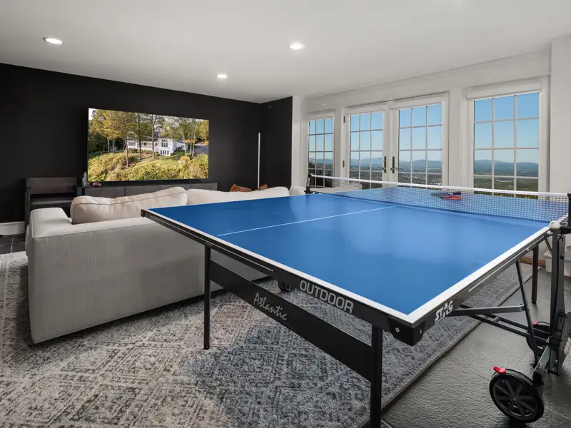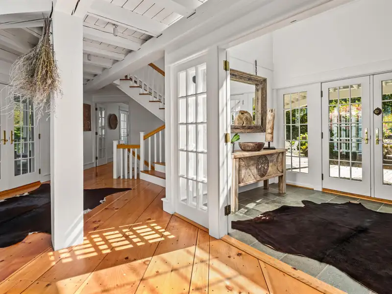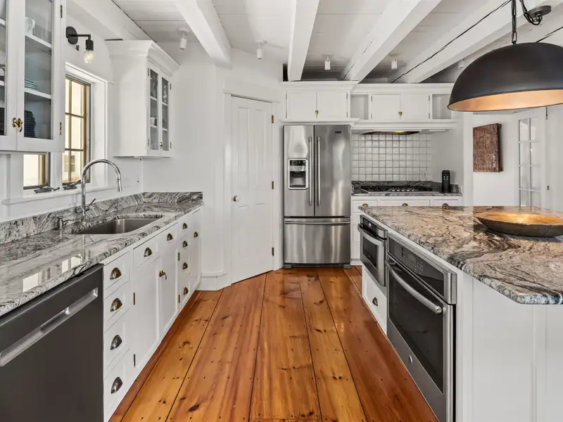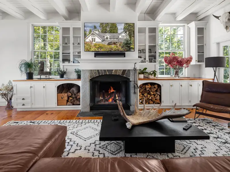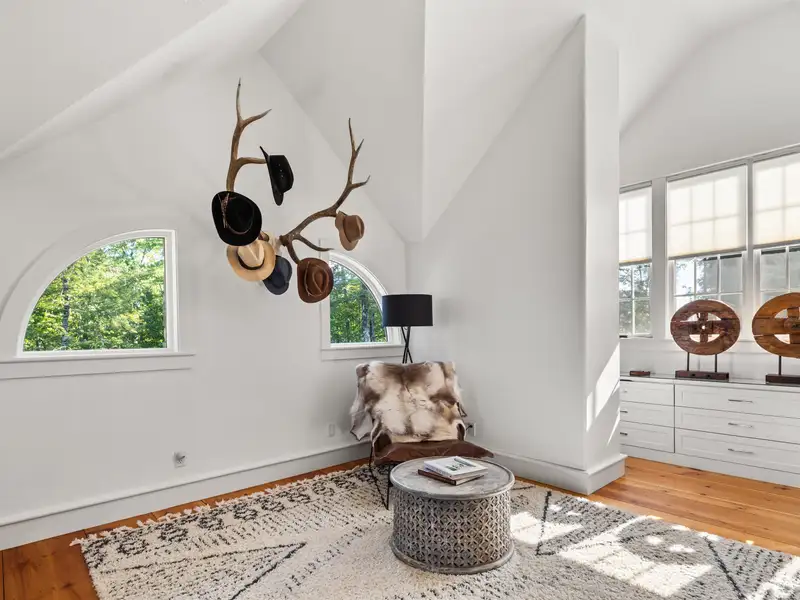 - Wide-plank pine floors with alpine décor