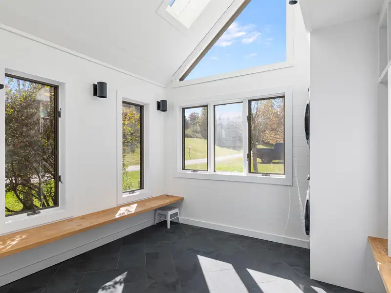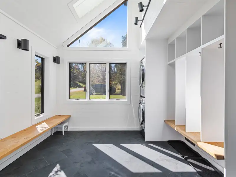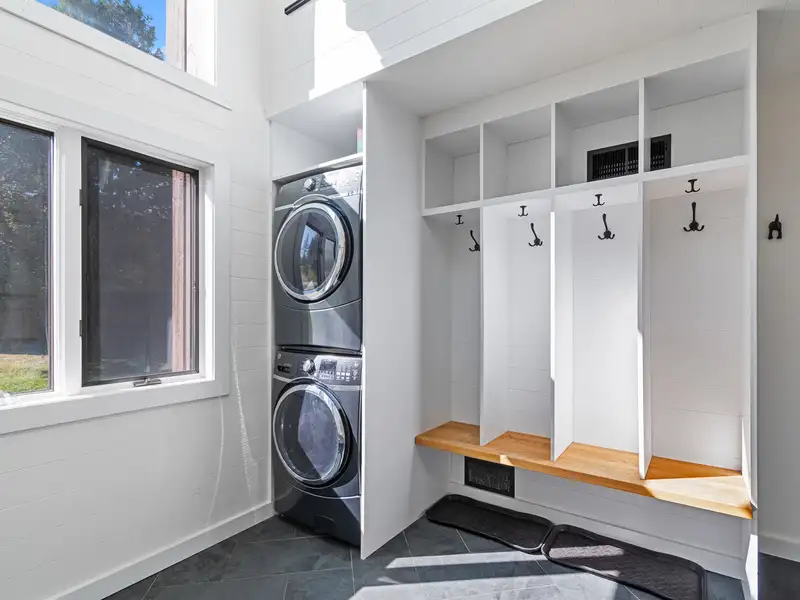 - Newly tiled mudroom with washer/dryer