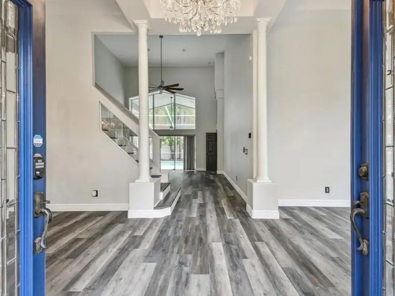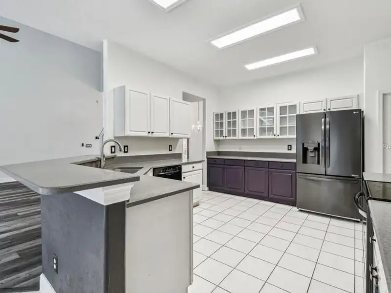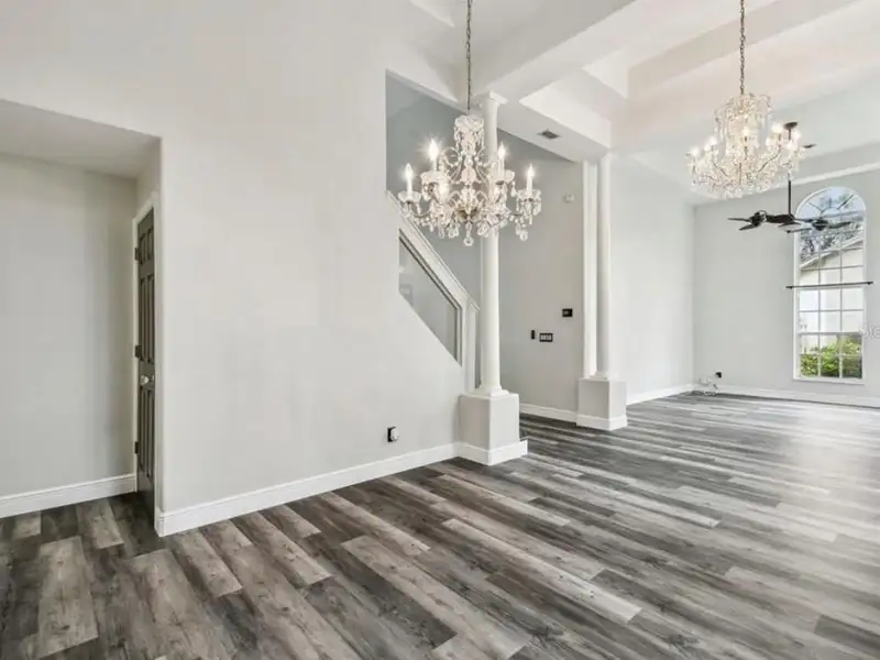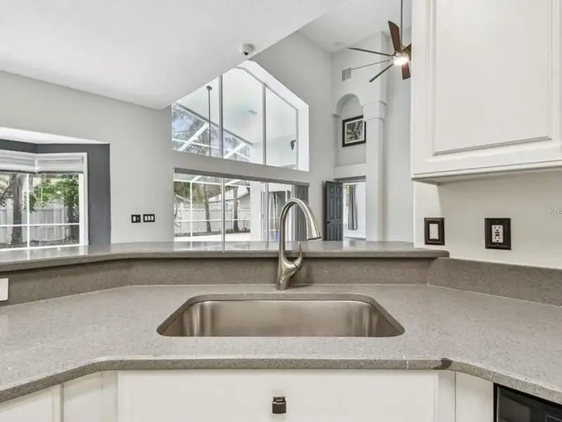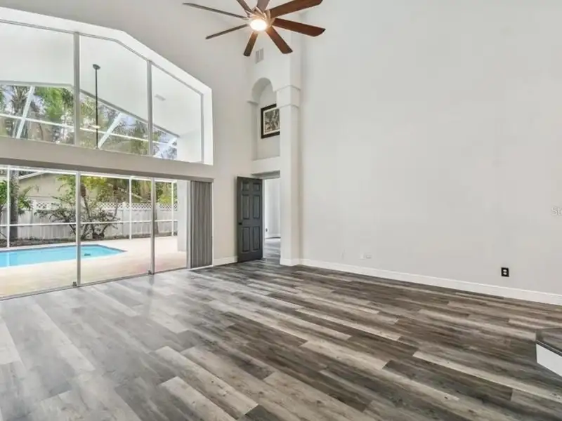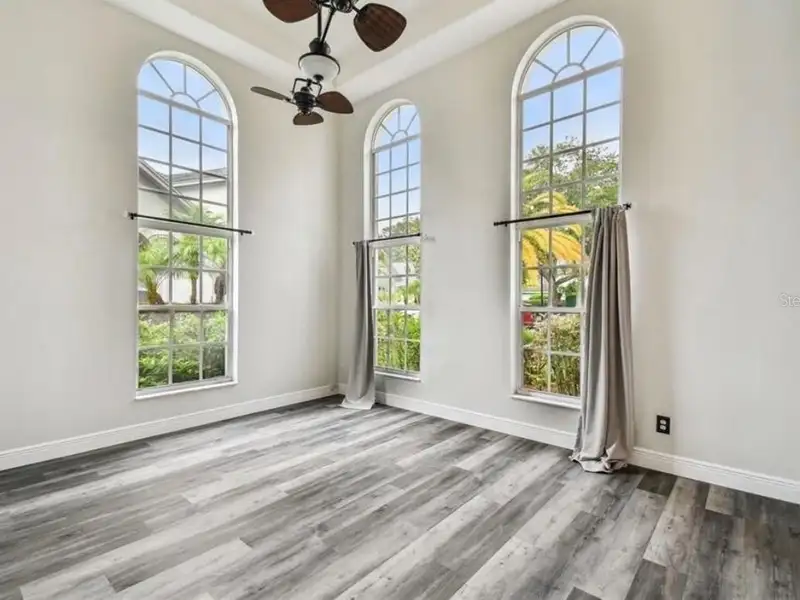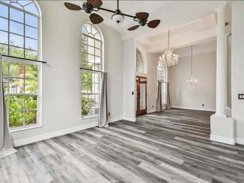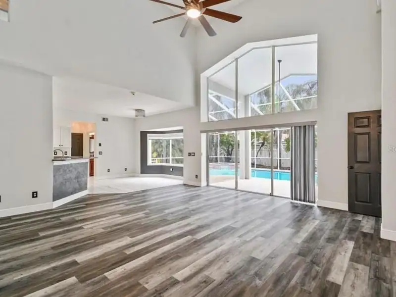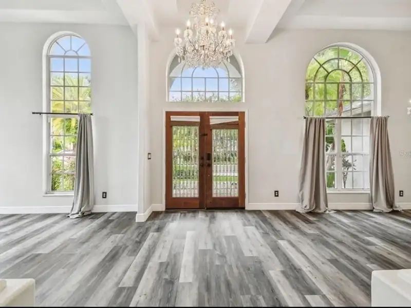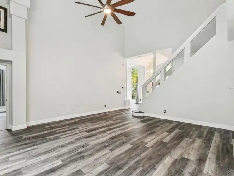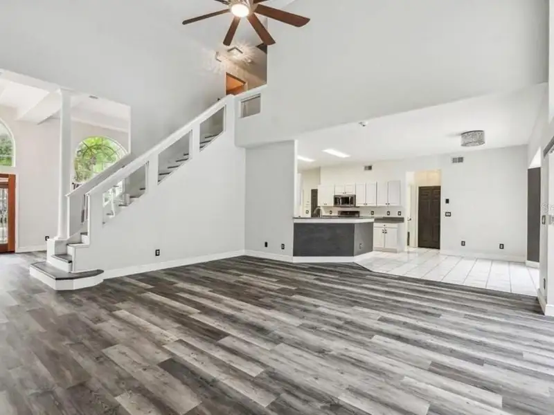 - Spacious open floor plan with high ceilings