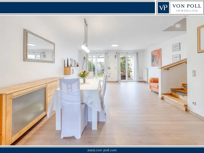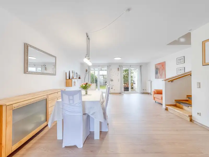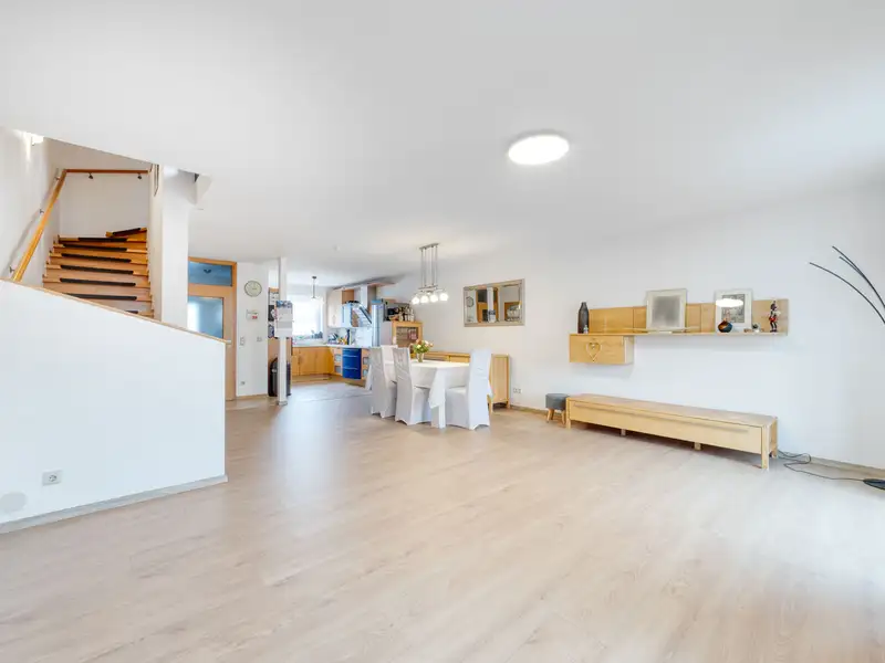 - Spacious living and dining area with parquet flooring