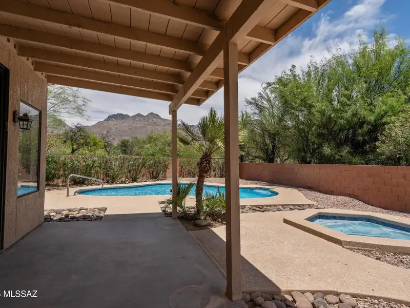 - Backyard with pool, spa, and covered patio