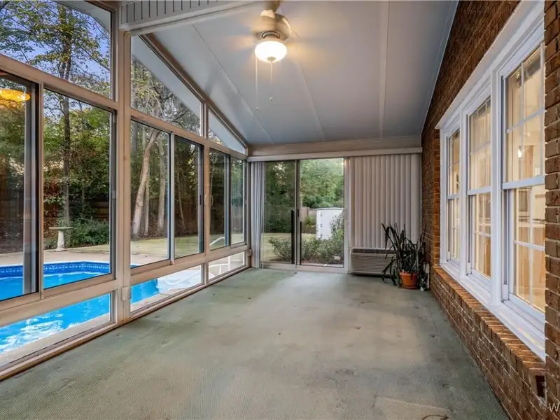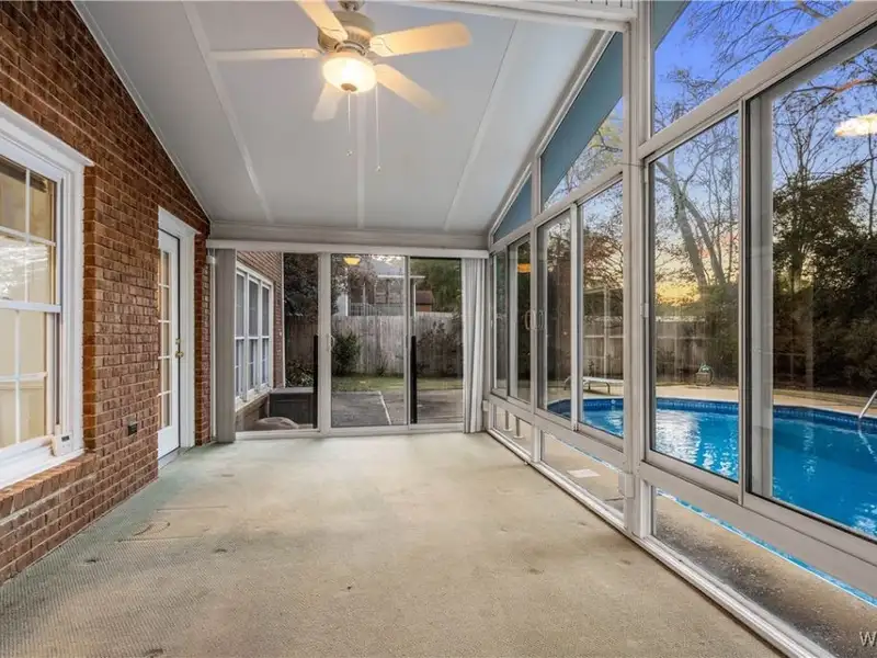 - Light-filled sunroom overlooking pool