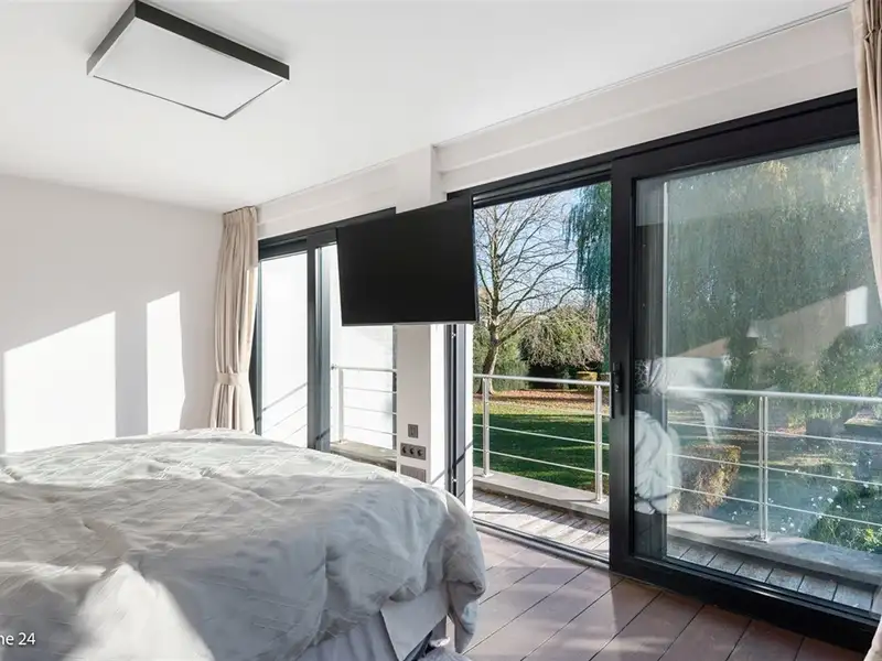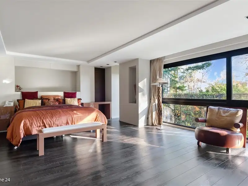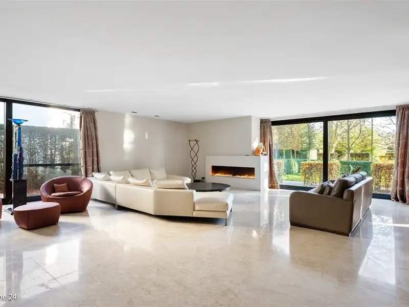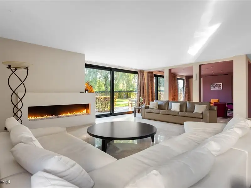 WILRIJK - Elsdonk: Fully renovated luxury 6-bedroom villa with beautiful landscaped garden on 2,531m². EPC B certificate. ; DESCRIPTION: ; This ready-to-use and fully renovated villa (°2006) is located in one of the most beautiful avenues of the desirable, residential Elsdonk neighborhood. ; Ground Floor: You can enter the property through a beautifully landscaped front garden behind automatic entrance gates. The entrance hall has vestibules and a guest toilet with washbasin. Spacious living space over the entire width of the house overlooking the beautiful garden and terrace through ceiling-high windows. It is divided into several sitting areas with fireplace and a spacious dining room. Adjacent, fully fitted high-quality kitchen with natural stone worktops, equipped with all appliances and a dining area. A separate office area is also provided. Behind a garage door you can find a large 2-car garage, a storage room and a separate studio with shower room. ; Garden: The garden is laid out with a footpath and 'ZEN' space with a water feature. Here you can privately relax. ; 1° Floor: A bedroom hallway with a TV room leads to several bedrooms. Luxurious master bedroom (approx 65m²) with large bathroom and Jacuzzi as well as a custom-made fitted wardrobes. Bedroom 2 with adjoining bathroom and fitted wardrobes. Bedroom 3 with adjoining bathroom and fitted wardrobes. Bedroom 4 with adjoining bathroom and fitted wardrobes. ; 2° Floor: Two additional spacious bedrooms with separate installed shower room and separate toilet. ; Basement: The house has a basement and is divided into several storage and technical rooms. ; DETAILS: ; * Stunning location in the Elsdonk neighborhood * Magnificent plot with beautiful garden * Completely renovated and equipped with innovative technology (electricity, windows, underfloor heating, pipes, insulation) * Elevator * Air conditioning ; ;