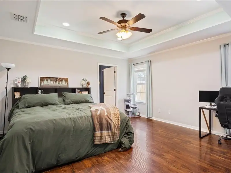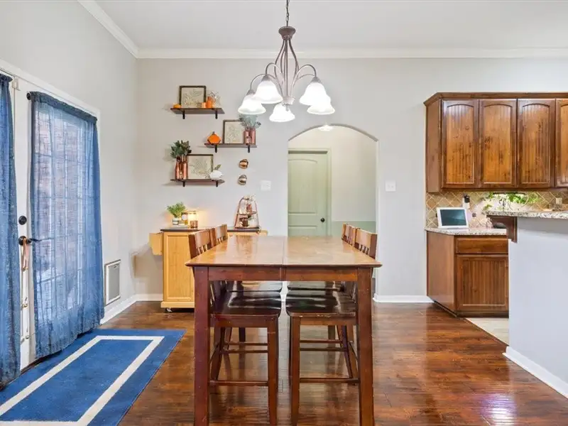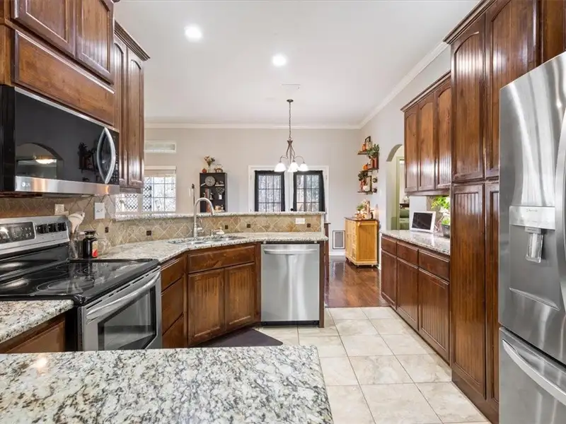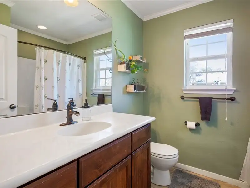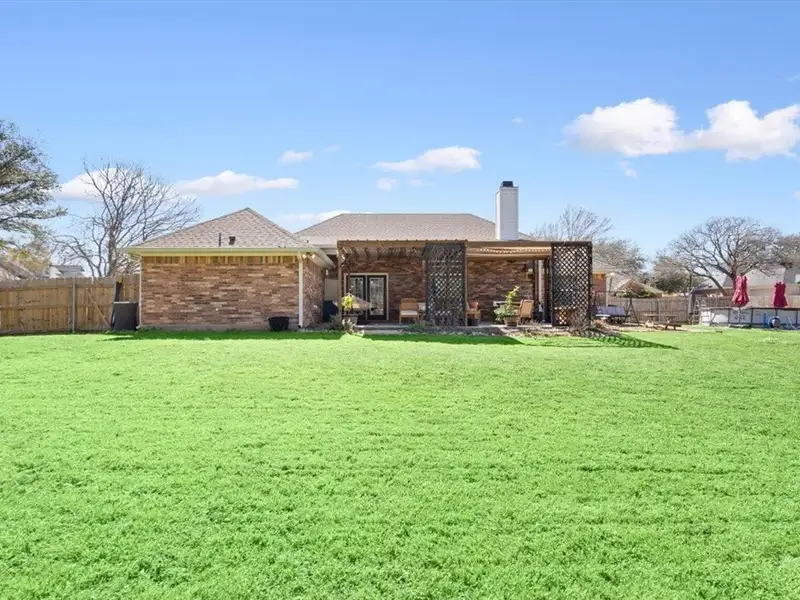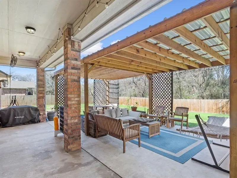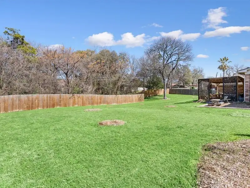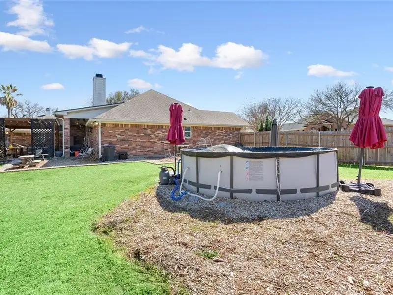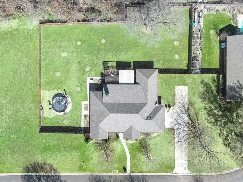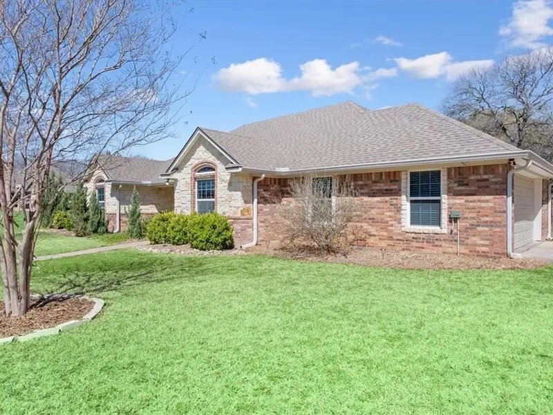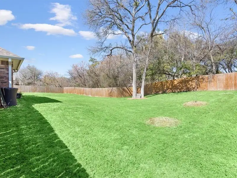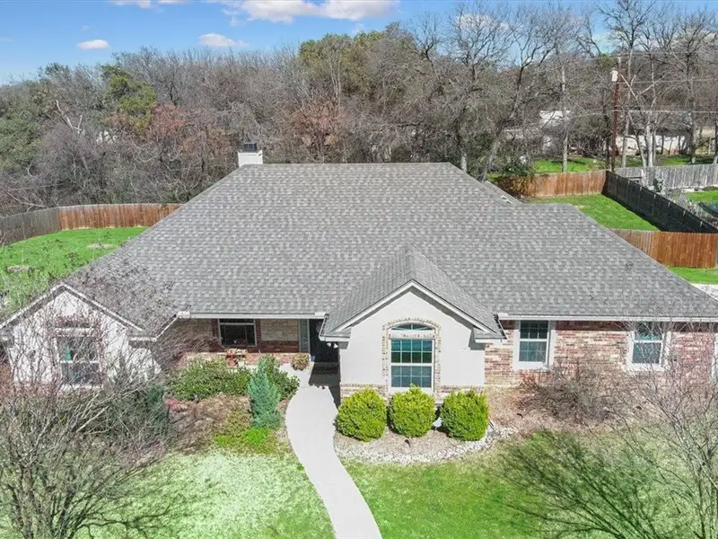 Nestled in the desirable Deer Ridge subdivision of Woodway, TX, near the serene waters of Lake Waco, this stunning modern ranch-style home offers a perfect blend of elegance, comfort, and nature. Situated on a generous 0.50-acre lot, the property boasts impressive brick and stone architecture, soaring ceilings, and rich dark engineered hand-scraped wood flooring that enhances both style and ease of maintenance. The front yard is a picturesque retreat with mature crepe myrtle trees, lush landscaping, and a charming Butterfly Garden featuring vibrant Zinnias, Morning Glories, Mint, and Nasturtium, welcoming you to the home. Inside, the entryway leads to a versatile front room that can serve as a formal dining area, office, or second living space—currently a delightful play area for kids. The heart of the home is the open-concept kitchen, where custom dark wood cabinetry offers ample storage, complemented by sleek stainless steel appliances. A countertop bar provides casual seating, making meal prep a social experience. Flowing seamlessly into the dining and living areas, the space is anchored by an Austin stone wood-burning fireplace with a hearth for additional seating and a wood mantel for display. Expansive windows across the back of the home provide breathtaking views of the vast backyard, which is a true outdoor oasis. An extended concrete patio, featuring both an open pergola and covered seating areas, creates a dream setting for entertaining and relaxation. The isolated primary bedroom is a private retreat, painted in a striking midnight blue with dark brass fixtures, offering a spa-like en-suite bath complete with a luxurious soaking tub. On the opposite side of the home, three additional bedrooms share a well-appointed hall bath. Step outside to discover the “WOW FACTOR” — a sprawling, fully fenced backyard perfect for soccer games, football, or simply soaking in the beauty of nature. An above-ground swimming pool in the side yard conveys with the property, while numerous native Texas saplings, including Red Maple, Bald Cypress, Pine, Cedar Elm, Mexican Plum, Peach, and Mexican Buckeye, have been thoughtfully planted to provide shade and natural beauty in years to come. Gardening enthusiasts will appreciate the raised garden beds along the side of the home, already thriving with Blackberries, Blueberries, Tomatoes, Potatoes, and a variety of herbs. This peaceful and secluded neighborhood, designed as a large horseshoe-shaped street, sees very little traffic, making it ideal for quiet living. With an incredibly low HOA fee of just $150 annually for the care of the beautifully maintained entrance, this Deer Ridge gem offers an unparalleled combination of modern comfort, thoughtful landscaping, and a true connection to nature.