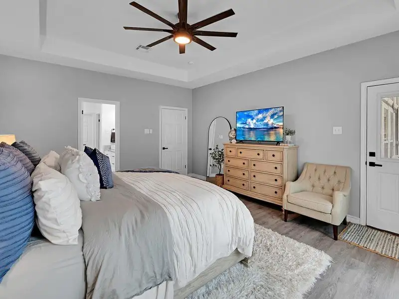 - Downstairs primary suite with private patio