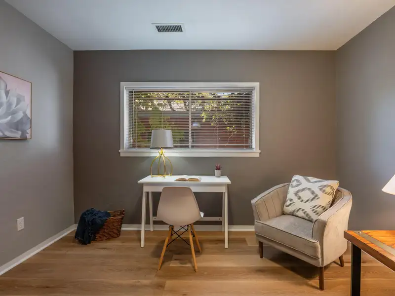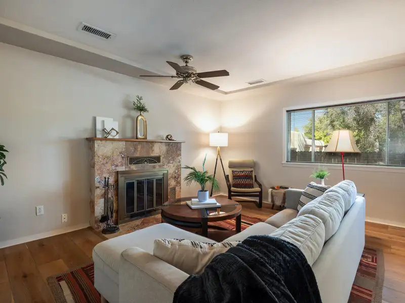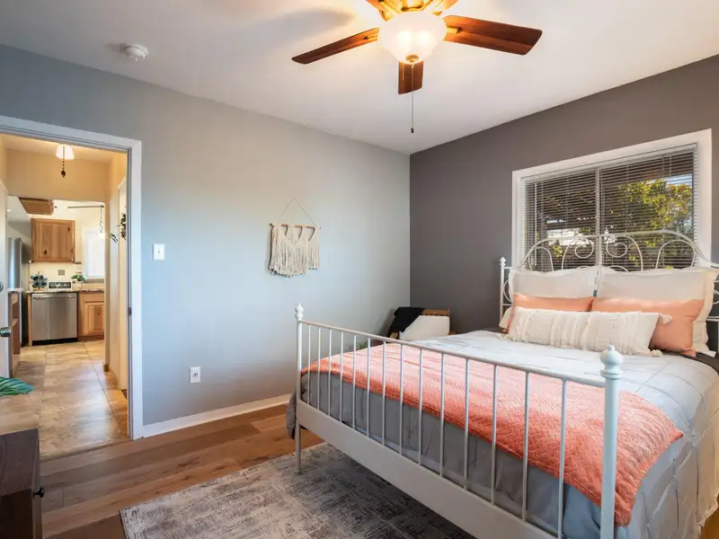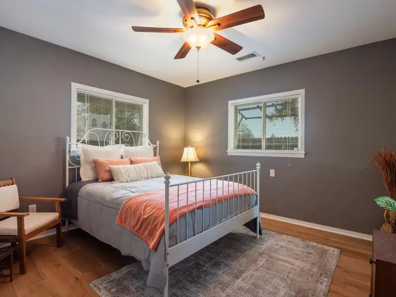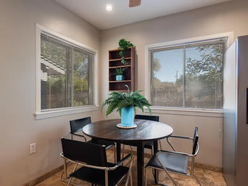 - Fenced corner lot with courtyard feel
