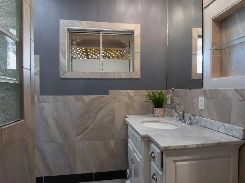 - Stunning bath with custom tile shower