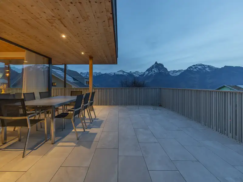 - Offener Wohnbereich mit bodentiefen Fenstern