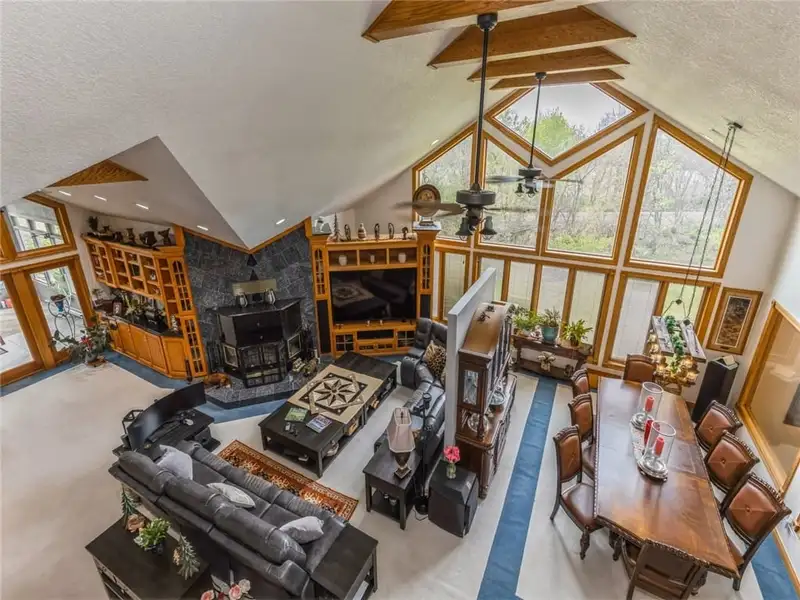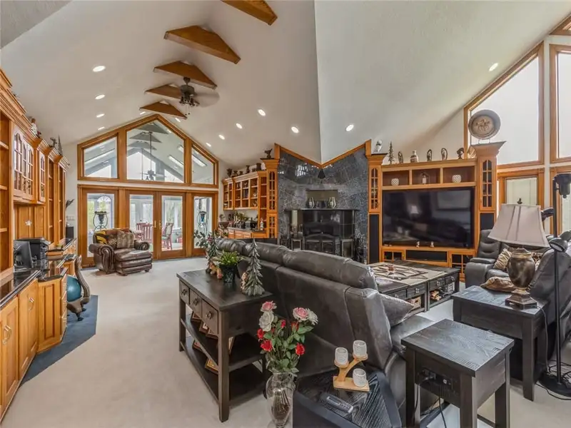 - Cathedral ceilings with large fireplace