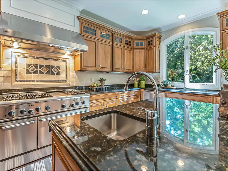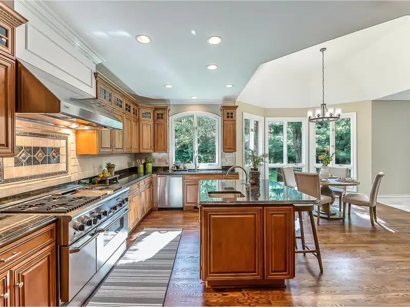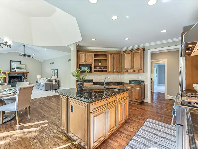 - Chef's kitchen with granite counters and island