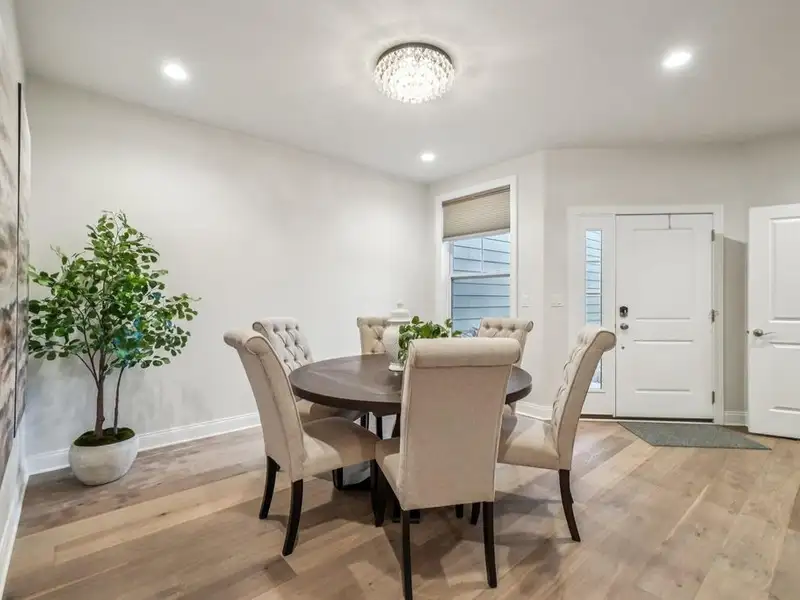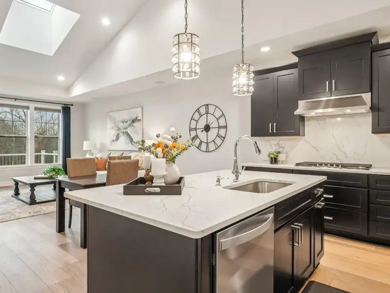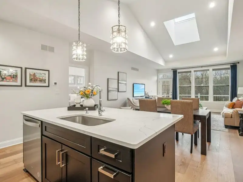 - Modern open-concept design with custom lighting