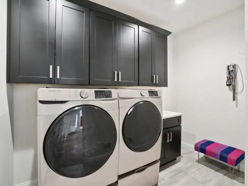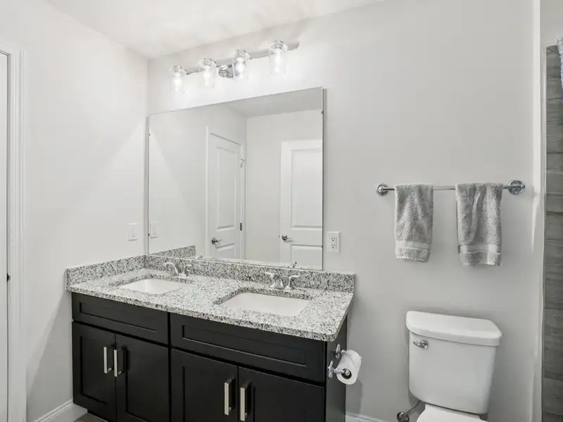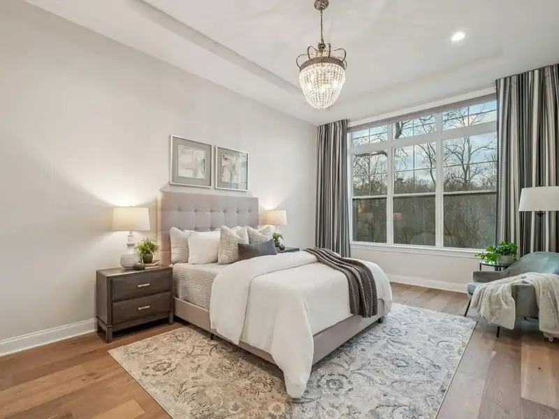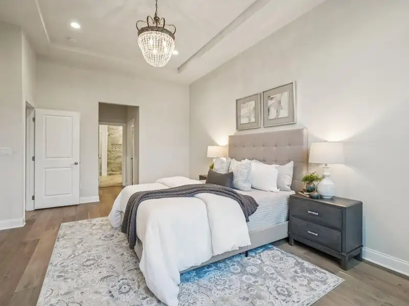 - First-floor primary suite with spa finishes