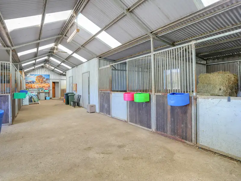 - Colourbond shed comprises 6 stables, tack rooms, separate WC