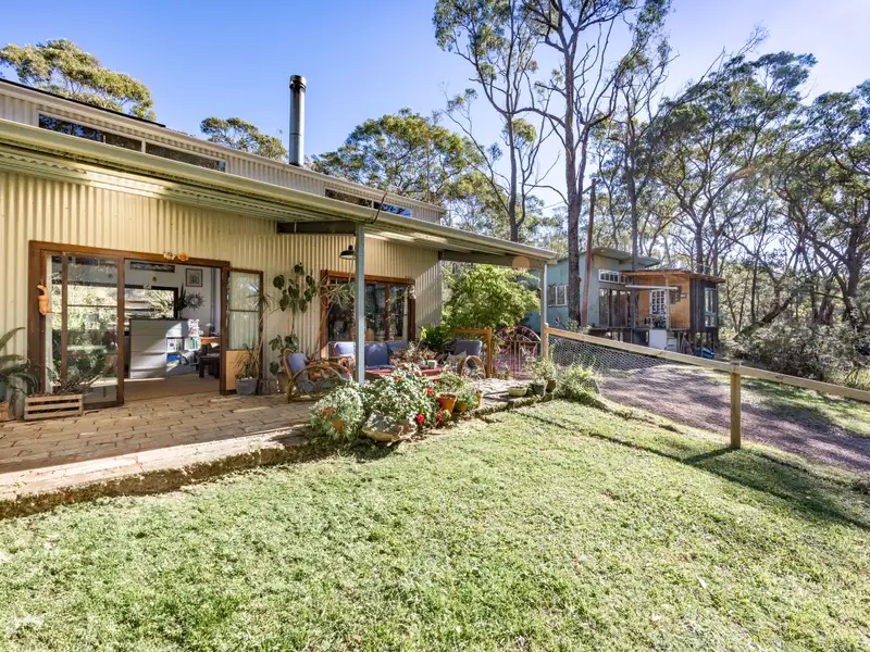 The large open paddock space is perfect for a sustainable vegetable garden or horse paddock. A self-sufficient shed is located 100 metres from the main dwelling making it ideal for separating work from home, or simply as a second retreat. The shed hosts a large rainwater tank, and its solar panels service the entire property. Its separate workshop is perfect for sculpting or handiwork whilst drawing inspiration from the natural surrounds.