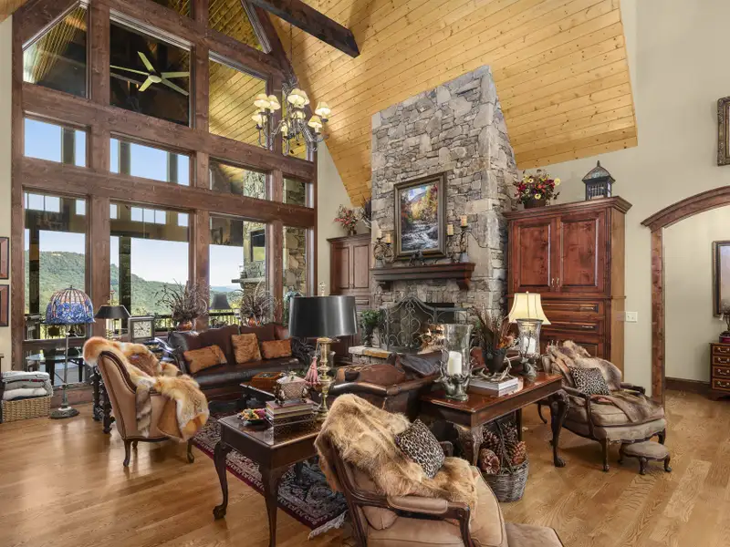 - Multiple stacked stone fireplaces