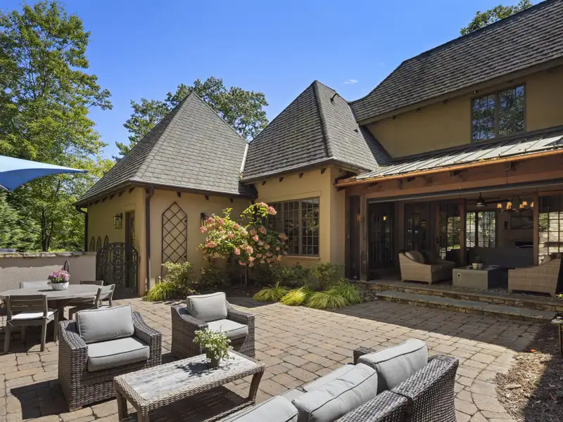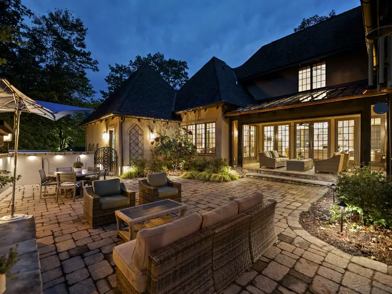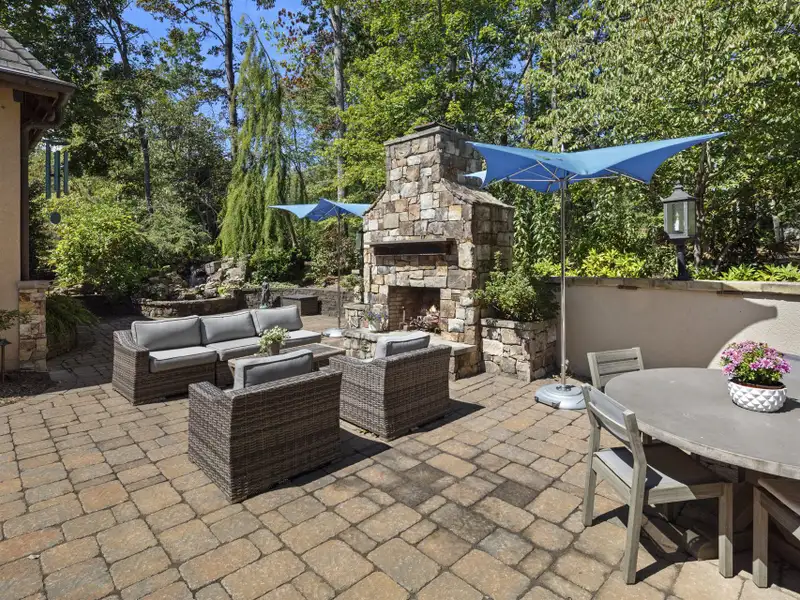- Landscaped courtyard with waterfall