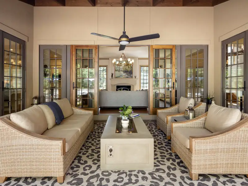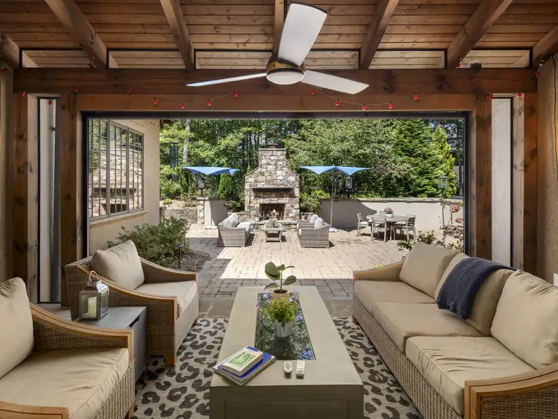 - Covered porch with roll-down screen